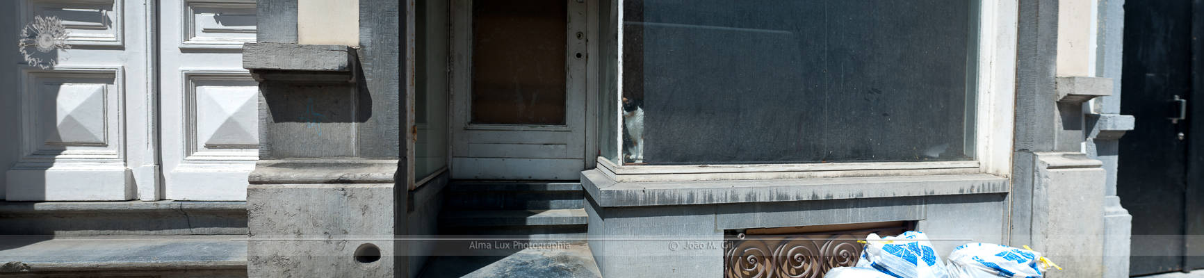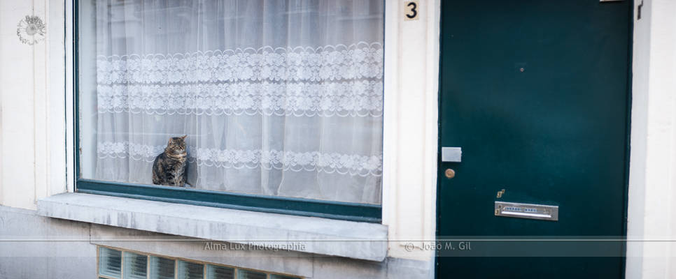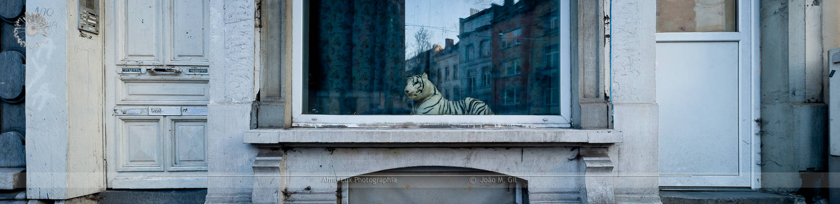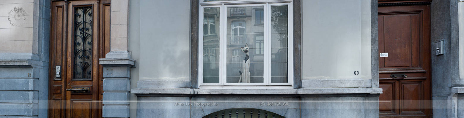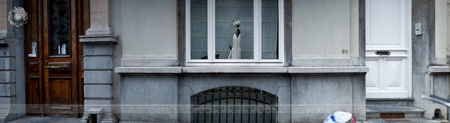 There is something about cats in Brussels. I go running and I see an enormous puppet of a white tiger on a window. I go shopping and I see another one, of porcelain. Along another street and window, there is an enormous wooden one. But then, the real ones appear, peeking out. Some are shy. Some are vain. Others are distrustful. Some are uppish. Others are unhappy. It's in front of our home. In the toilet of some friends' house, on a poster. On posters in the streets. There even is a lion in a shop. They are everywhere!
