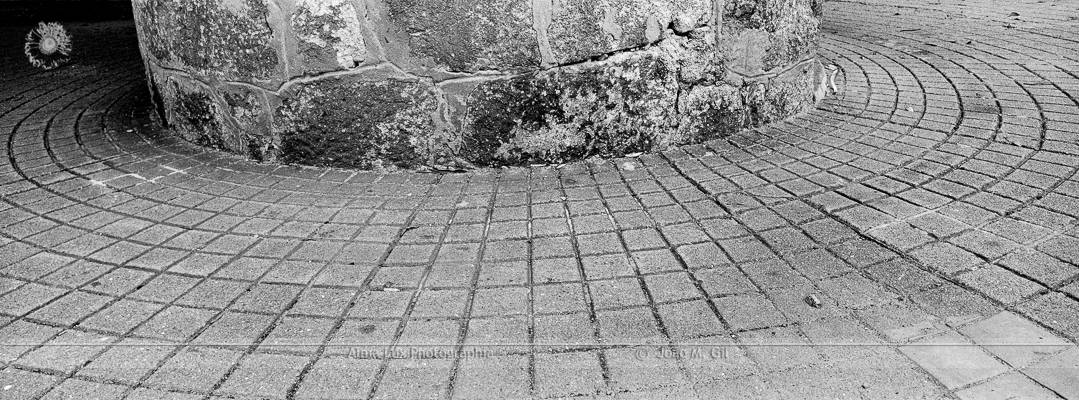 The photographs present fractions of vertical objects, along horizontal photographic lines. The common link is grasping the bases of those objects, being of people or trees, streams, the floor or structures. From their bases roots their existence, lives, situations, horizons, in their vertical evolution, life and form. Through fractioning, the observer imagines the whole, mentally providing the missing parts. This is enhanced by counterpoising Man with Nature, Artificial with Natural, Inorganic with Organic, Mono with Polychromatic, Geometric with Irregular.